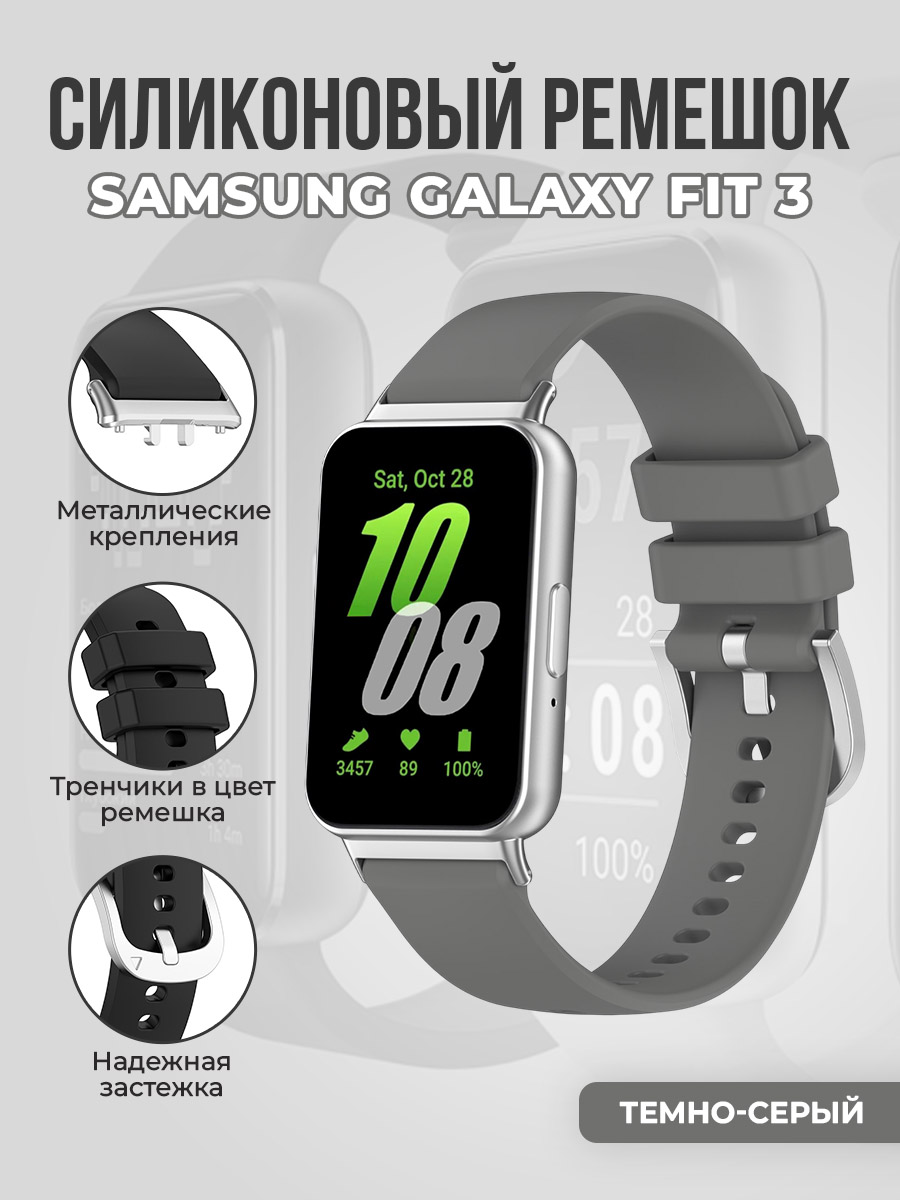 Силиконовый ремешок для Samsung Galaxy Fit 3, с металлическим фиксатором, темно-серый