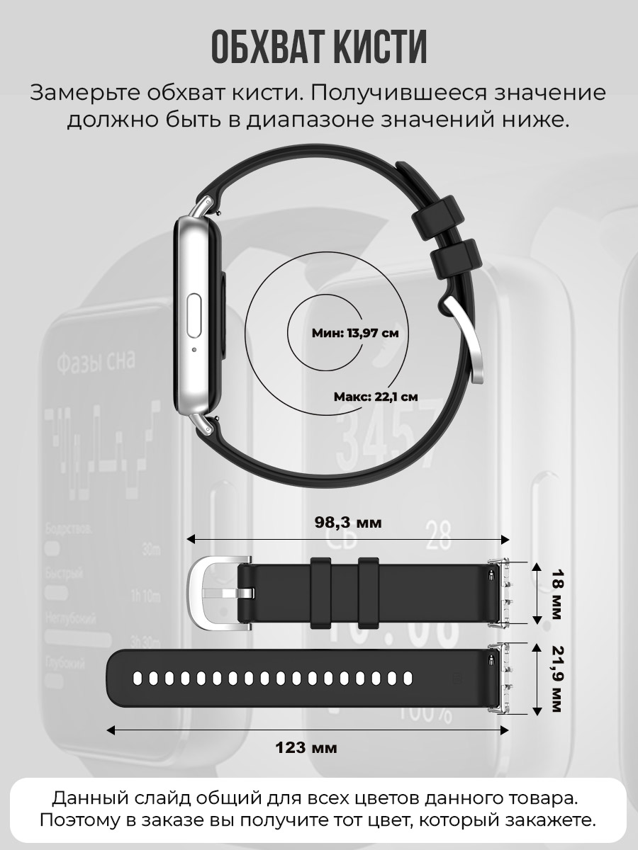 - Длина ремешка: 22.1 см