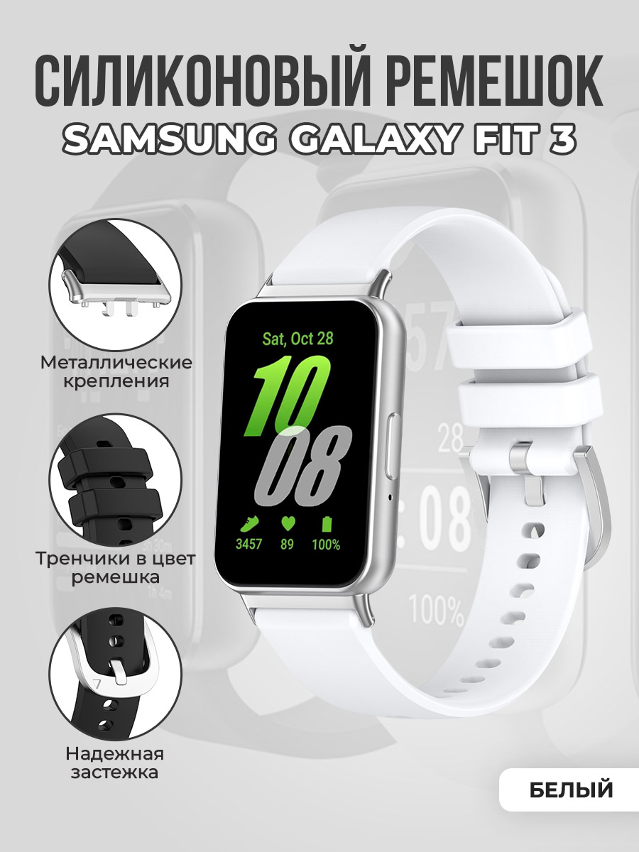 Силиконовый ремешок для Samsung Galaxy Fit 3, с металлическим фиксатором, белый