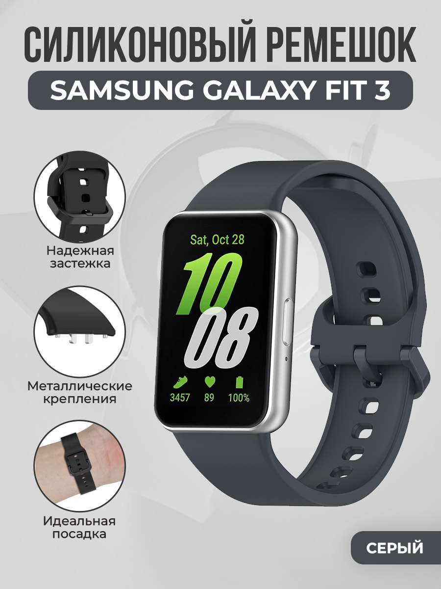 Силиконовый ремешок для Samsung Galaxy Fit 3, с застежкой в цвет ремешка, темно-серый