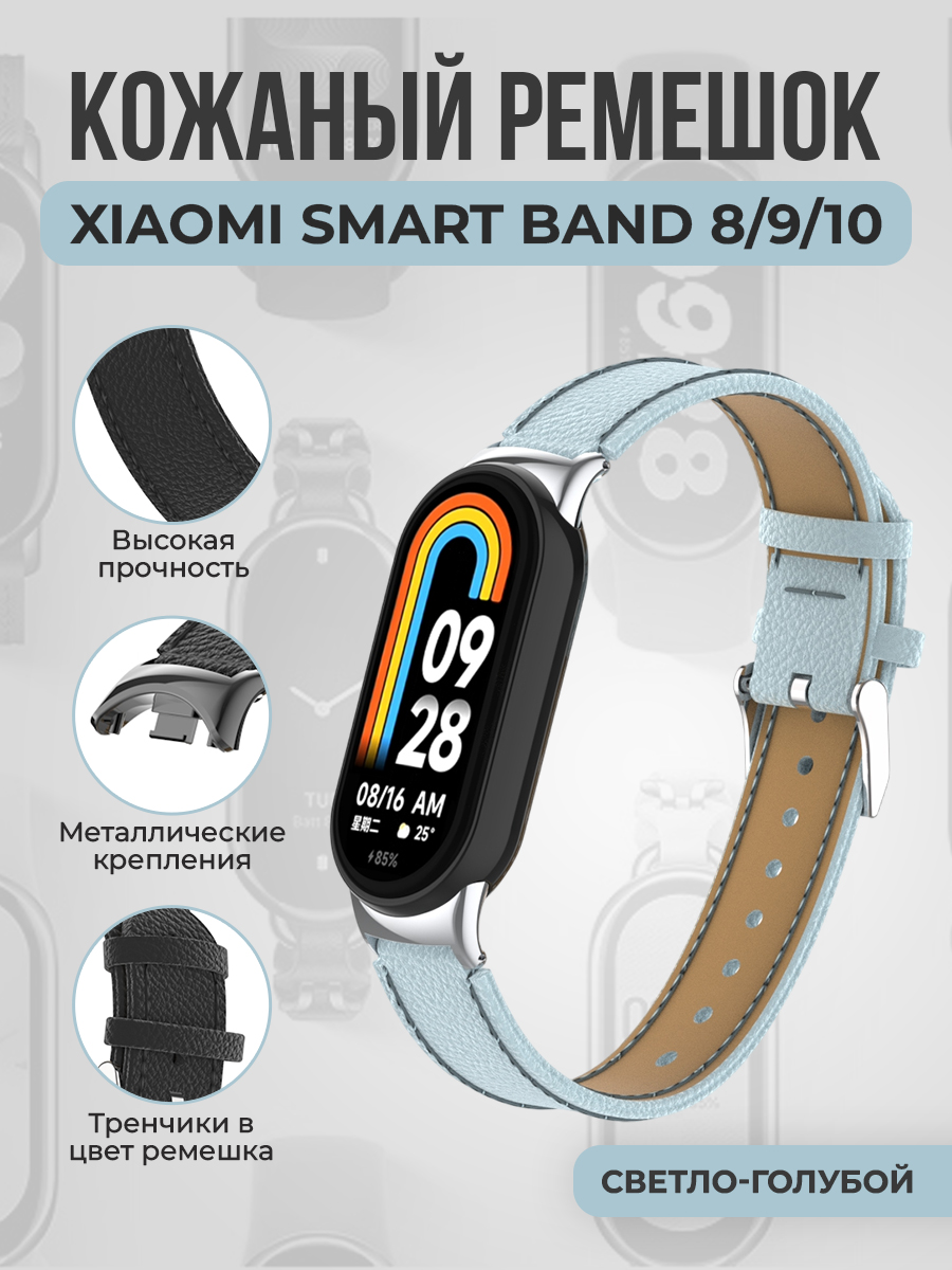 Кожаный ремешок для Xiaomi Smart Band 8/9/10, светло-голубой
