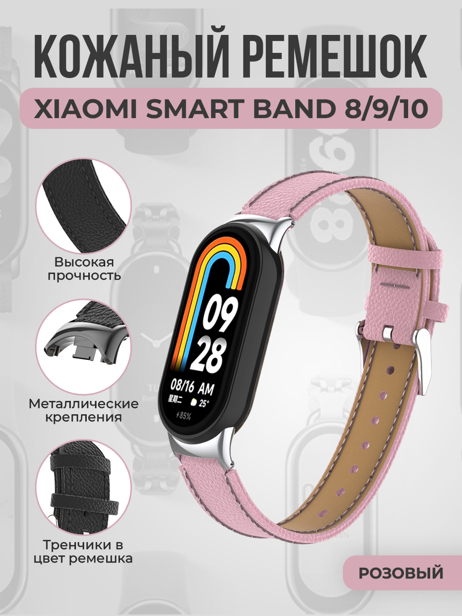 Кожаный ремешок для Xiaomi Smart Band 8/9/10, розовый