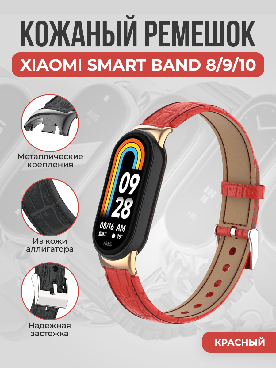 Ремешок из кожи аллигатора для Xiaomi Smart Band 8/9/10, красный