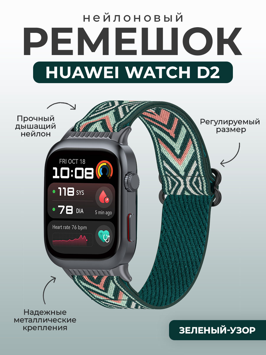 Нейлоновый ремешок для Huawei Watch D2, зеленый-узор