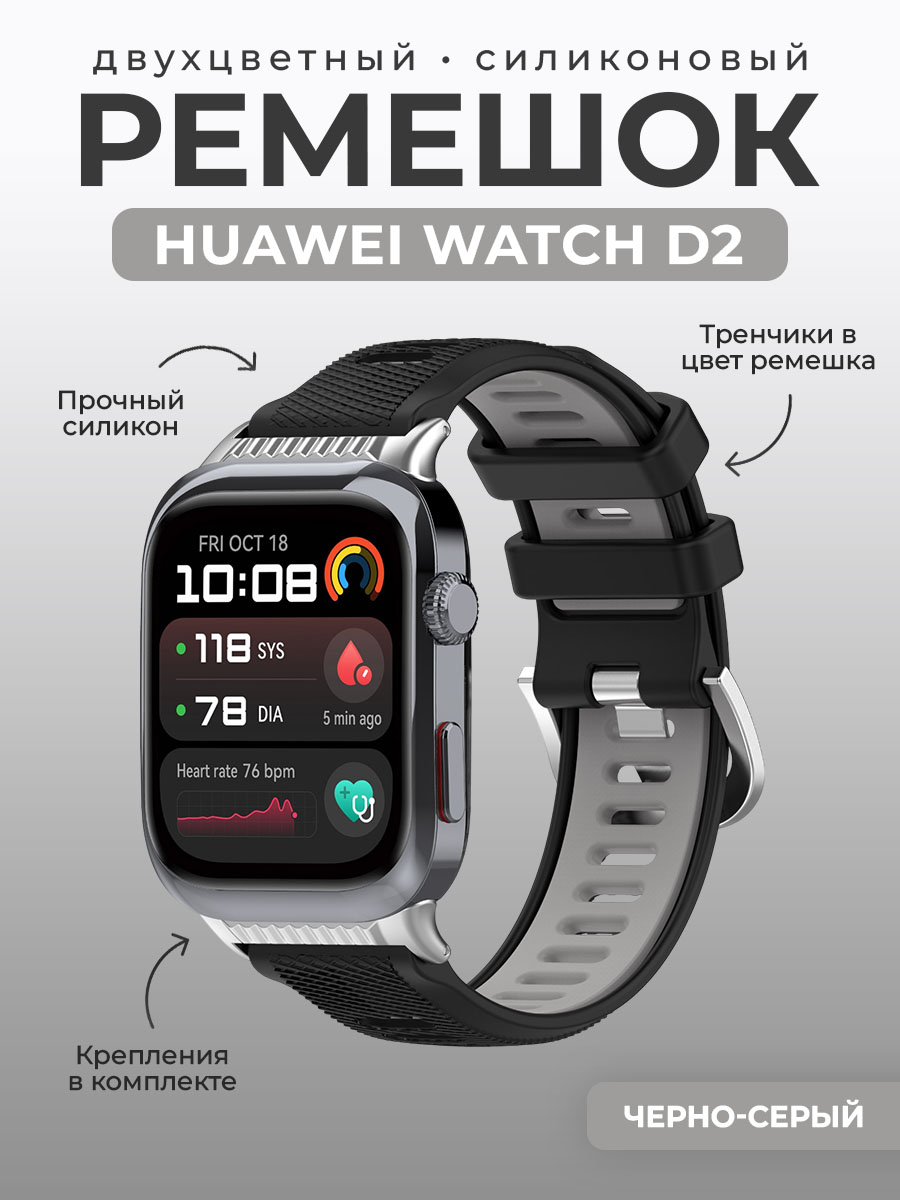 Двухцветный силиконовый ремешок для Huawei Watch D2, черно-серый