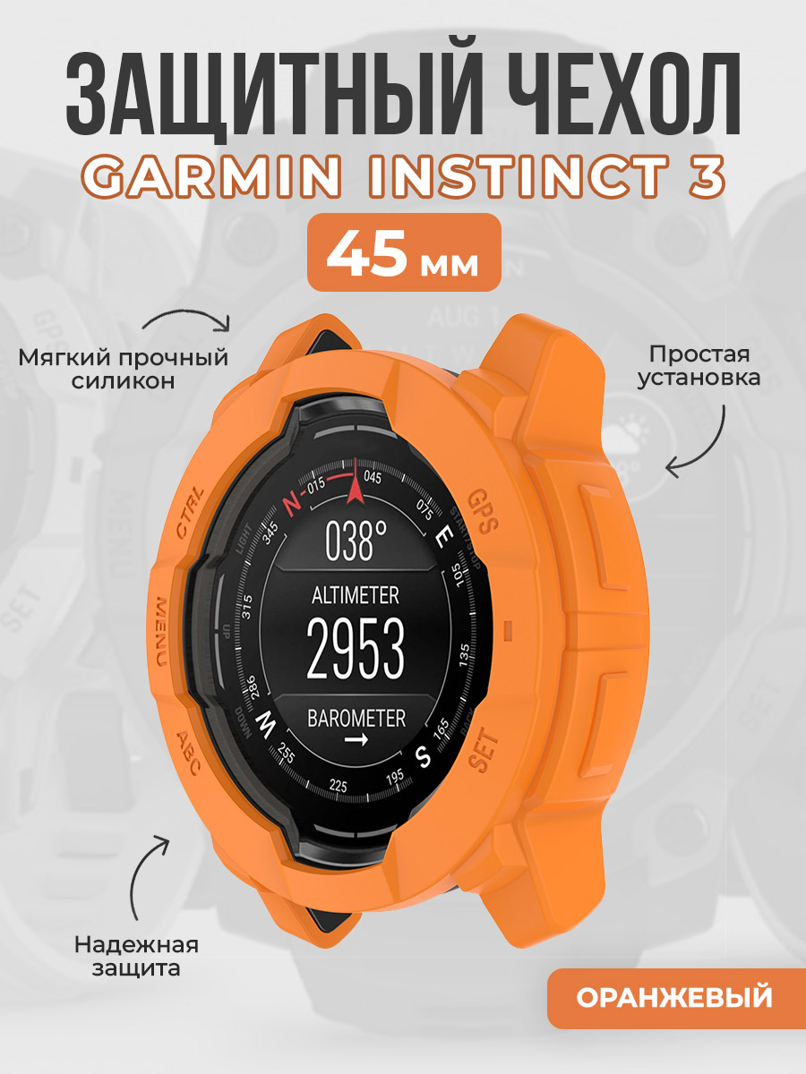Силиконовый защитный чехол для Garmin Instinct 3, 45 мм, оранжевый
