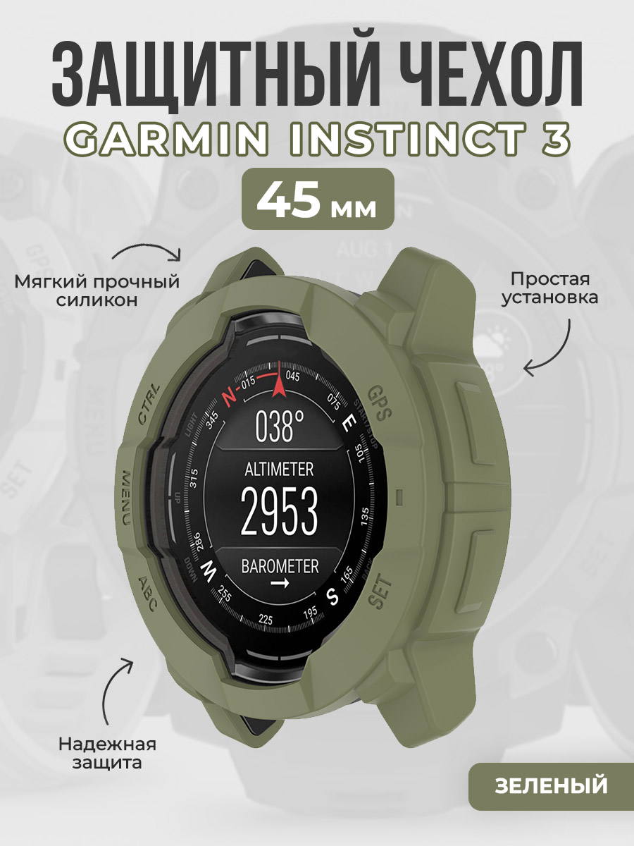 Силиконовый защитный чехол для Garmin Instinct 3, 45 мм, зеленый