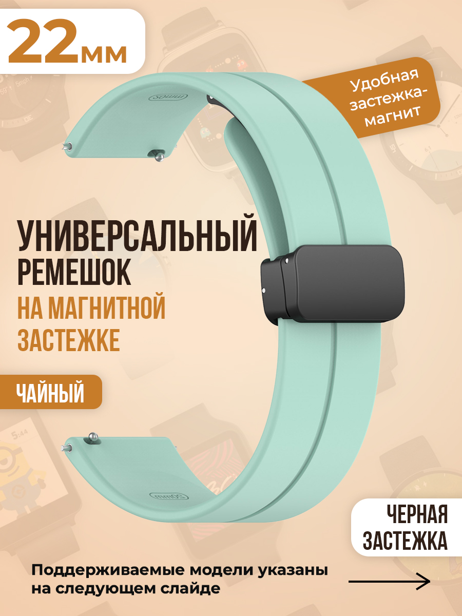 Представляем вашему вниманию универсальный силиконовый ремешок с магнитом 22 мм, черной застежкой — оптимальный выбор для тех, кто ищет качественный и стильный ремешок для смарт часов Huawei и Honor 22 мм . Этот силиконовый ремешок с прочной застежкой черного цвета идеально подходит для различных моделей смарт-часов Samsung и умных-часов Xiaomi, обеспечивая надежную фиксацию и максимальный комфорт.