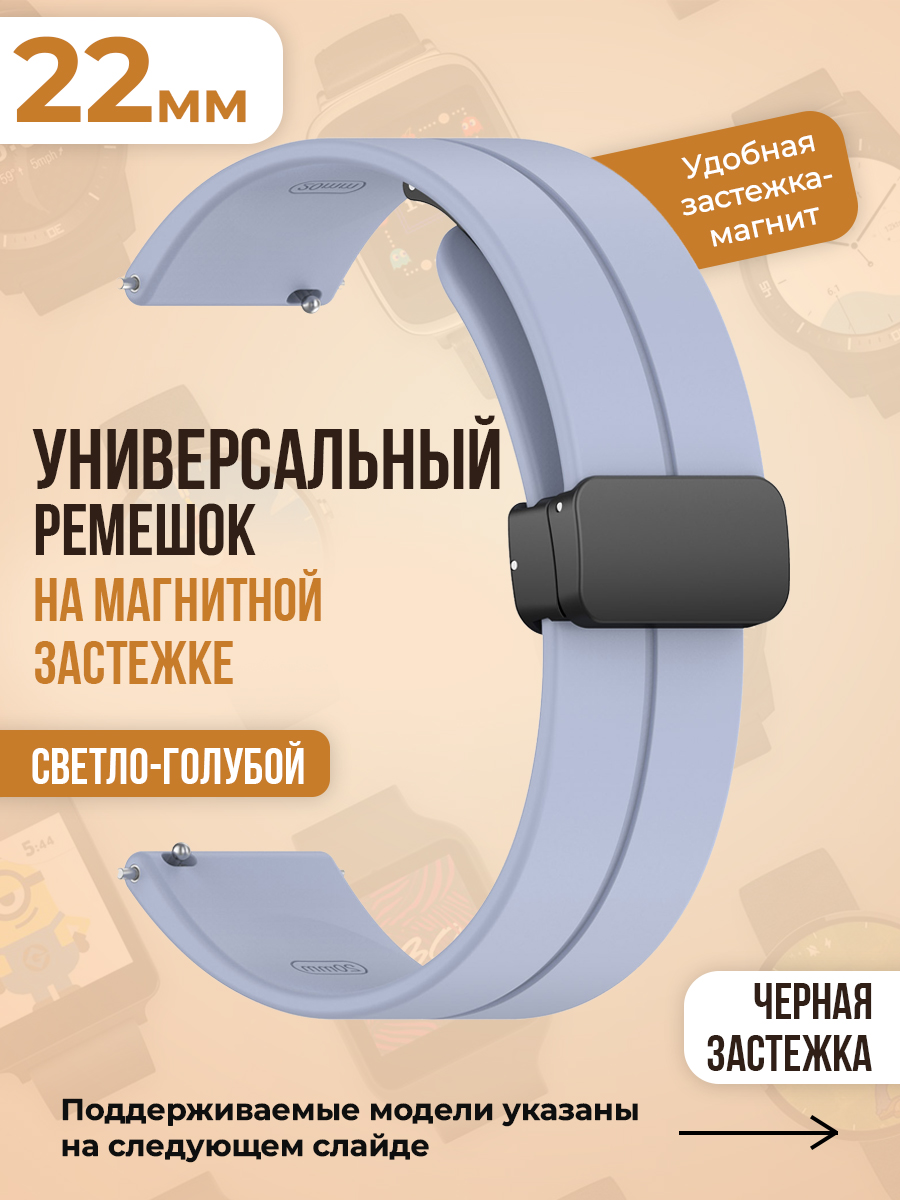 Универсальный силиконовый ремешок с магнитом 22 мм, черная застежка, светло-голубой