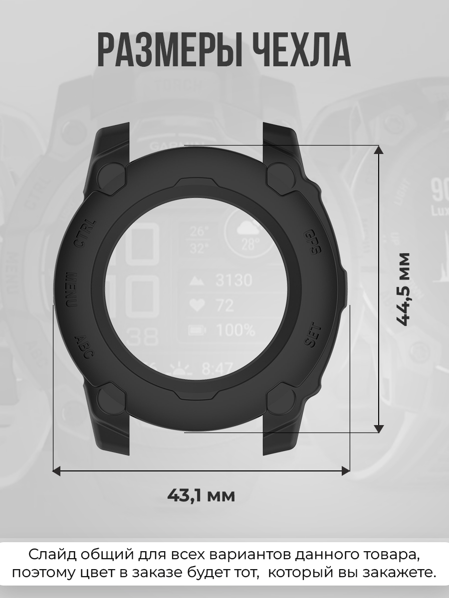 Выбирая накладка для Garmin Instinct E, вы получаете сочетание практичности и комфорта: легкий, не мешающий движению дизайн, гипоаллергенный материал и надежную защиту в любых условиях — от городского марафона до походного маршрута. Это однотонный чехол, который гармонично впишется в любой образ и служит верной защитой ваших смарт-часов.