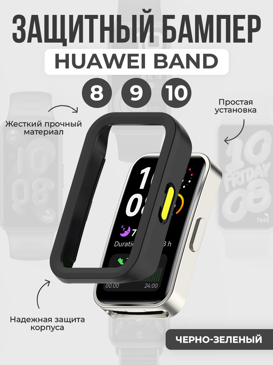 Защитный бампер для Huawei Band 8/9/10, черно-зеленый