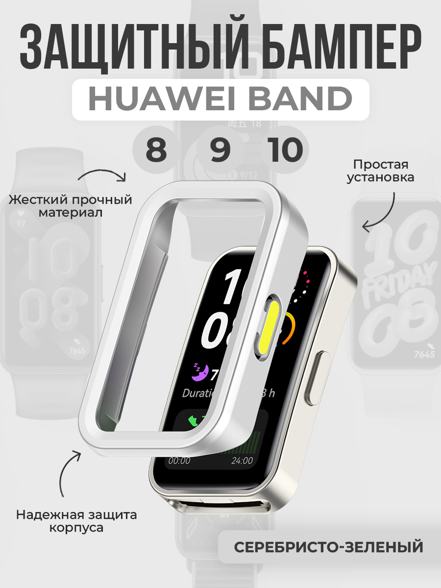 Защитный бампер для Huawei Band 8/9/10, серебристо-зеленый
