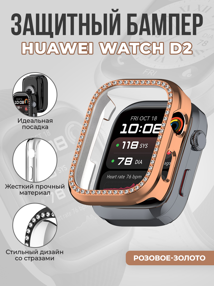 Защитный бампер со стразами для Huawei Watch D2, розовое-золото