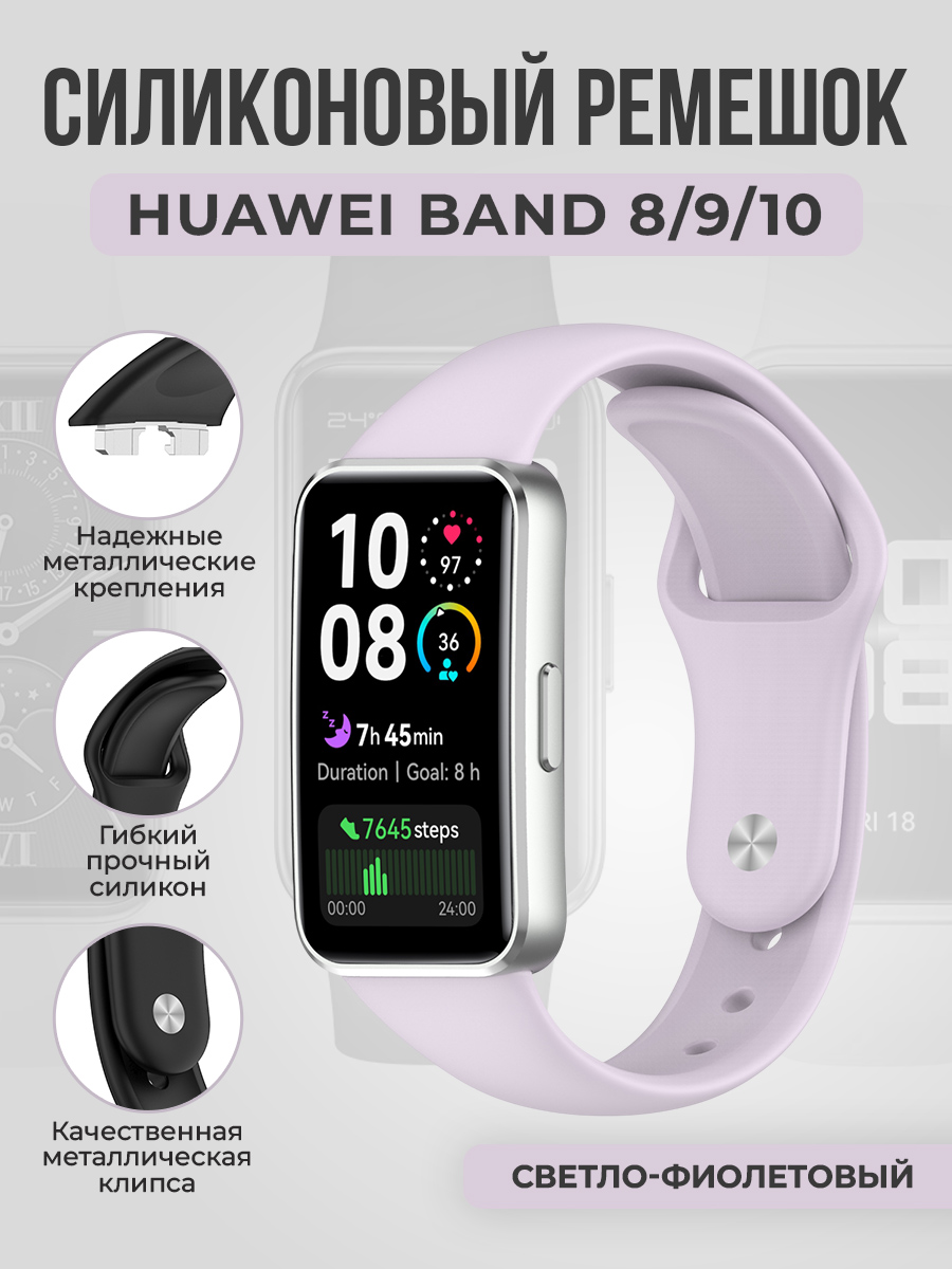 Силиконовый ремешок для Huawei Band 8/9/10, с металлической клипсой, светло-фиолетовый