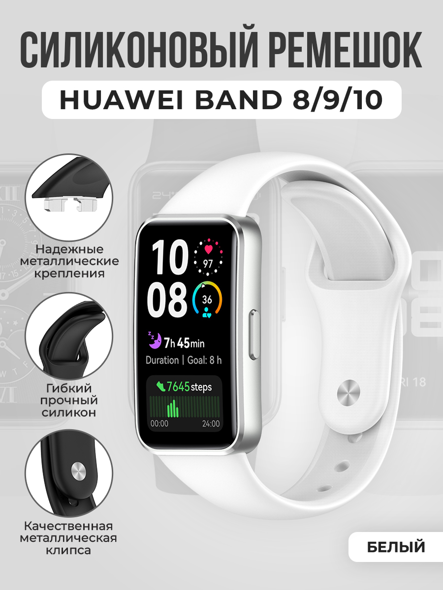 Силиконовый ремешок для Huawei Band 8/9/10, с металлической клипсой, белый