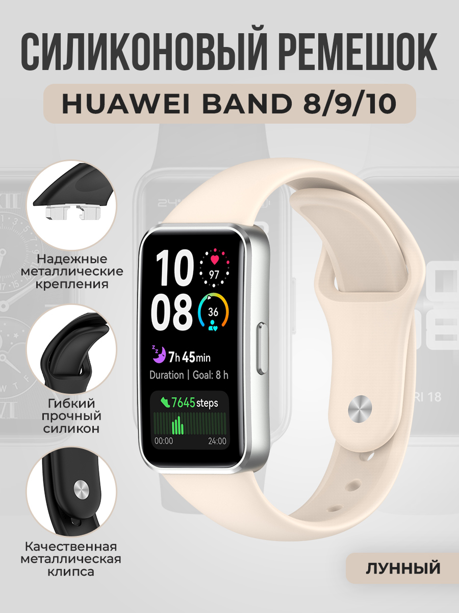 Силиконовый ремешок для Huawei Band 8/9/10, с металлической клипсой, лунный