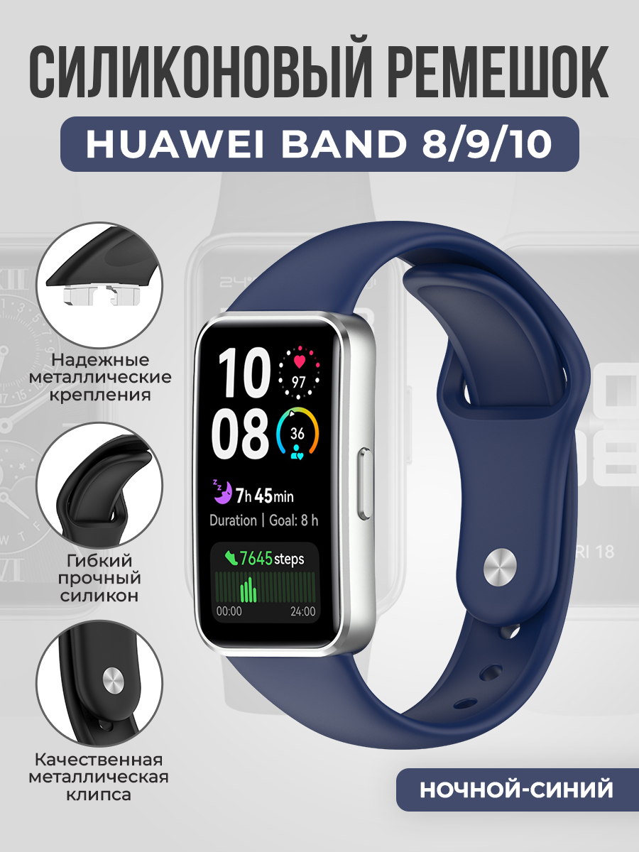Силиконовый ремешок для Huawei Band 8/9/10, с металлической клипсой, ночной-синий