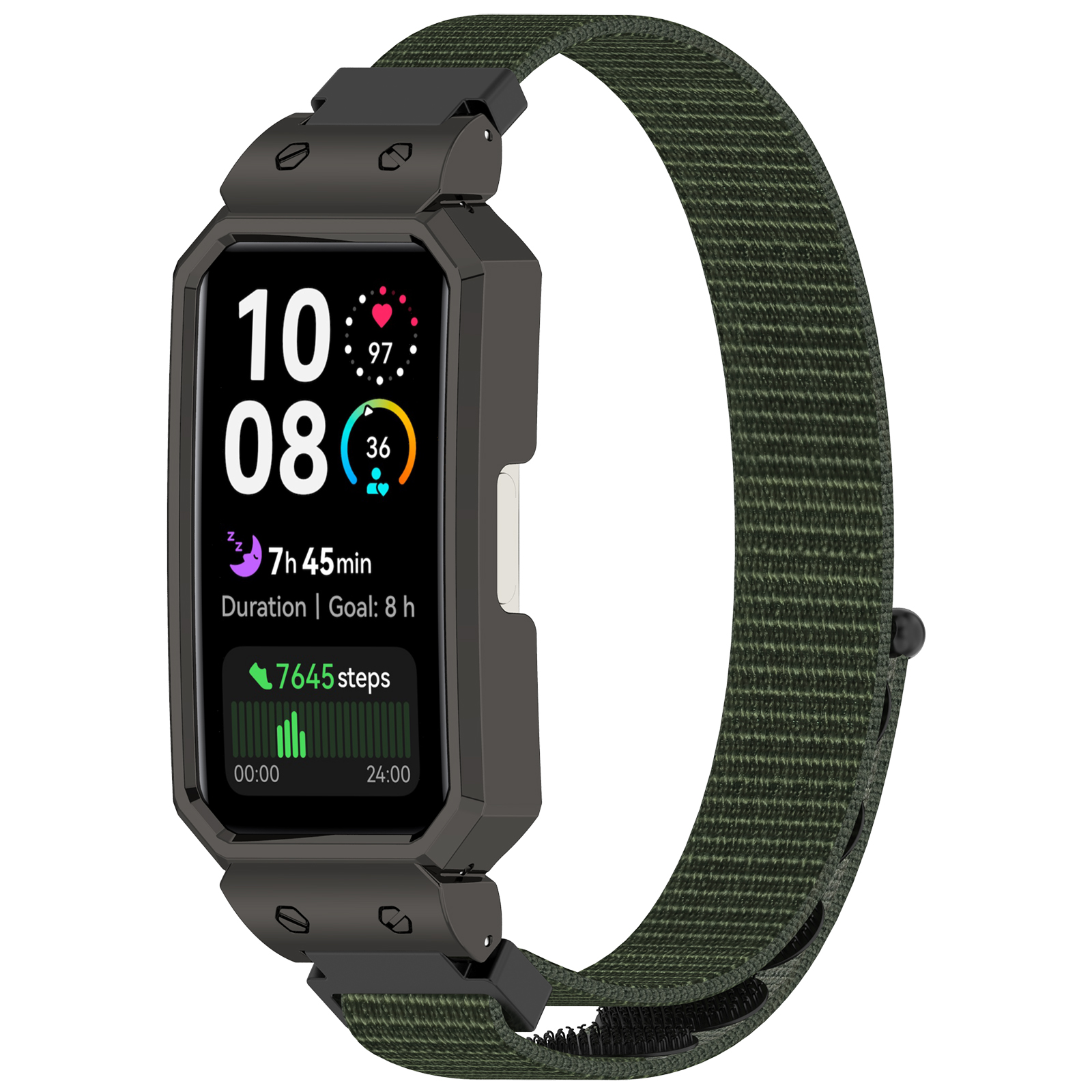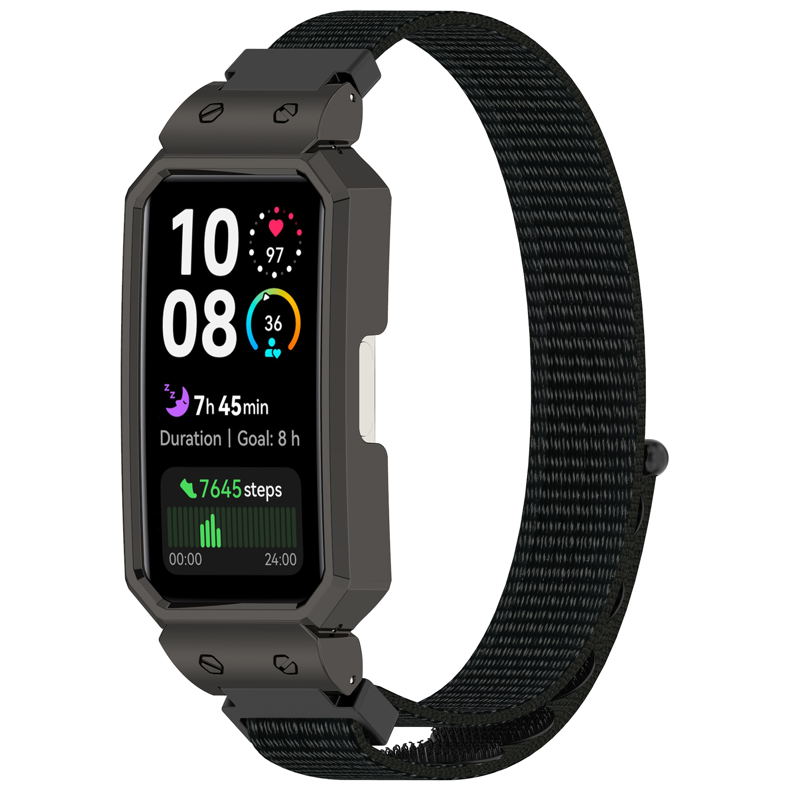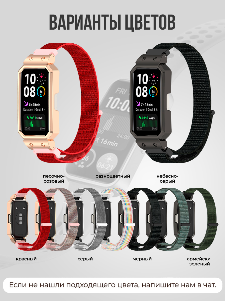 Этот ремешок создан для тех, кто ценит сочетание прочности, функциональности и стильного минимализма. Нейлоновая лента отличается высокой износостойкостью, легкостью и воздухопроницаемостью, что обеспечивает комфорт даже при длительном ношении. Металлический бампер украсит ваши Хуавей бенд 9, бенд 10, хуавей 8. Важной особенностью является металлический бампер, который не только обеспечивает дополнительную защиту дисплея, но и придаёт устройству более надежный и законченный внешний вид. Совокупность элементов делает ремешок идеальным выбором для повседневной эксплуатации, тренировок и активного образа жизни.