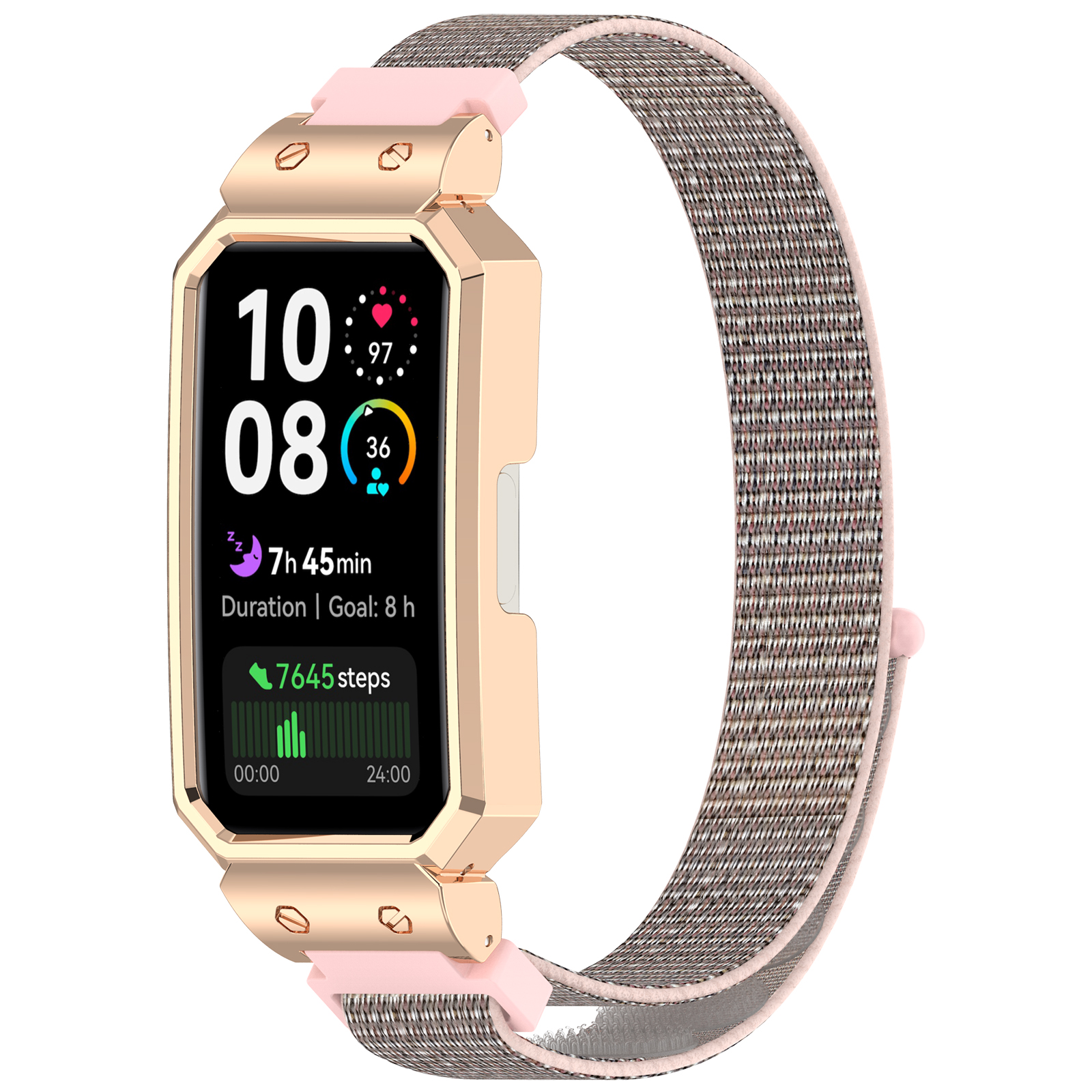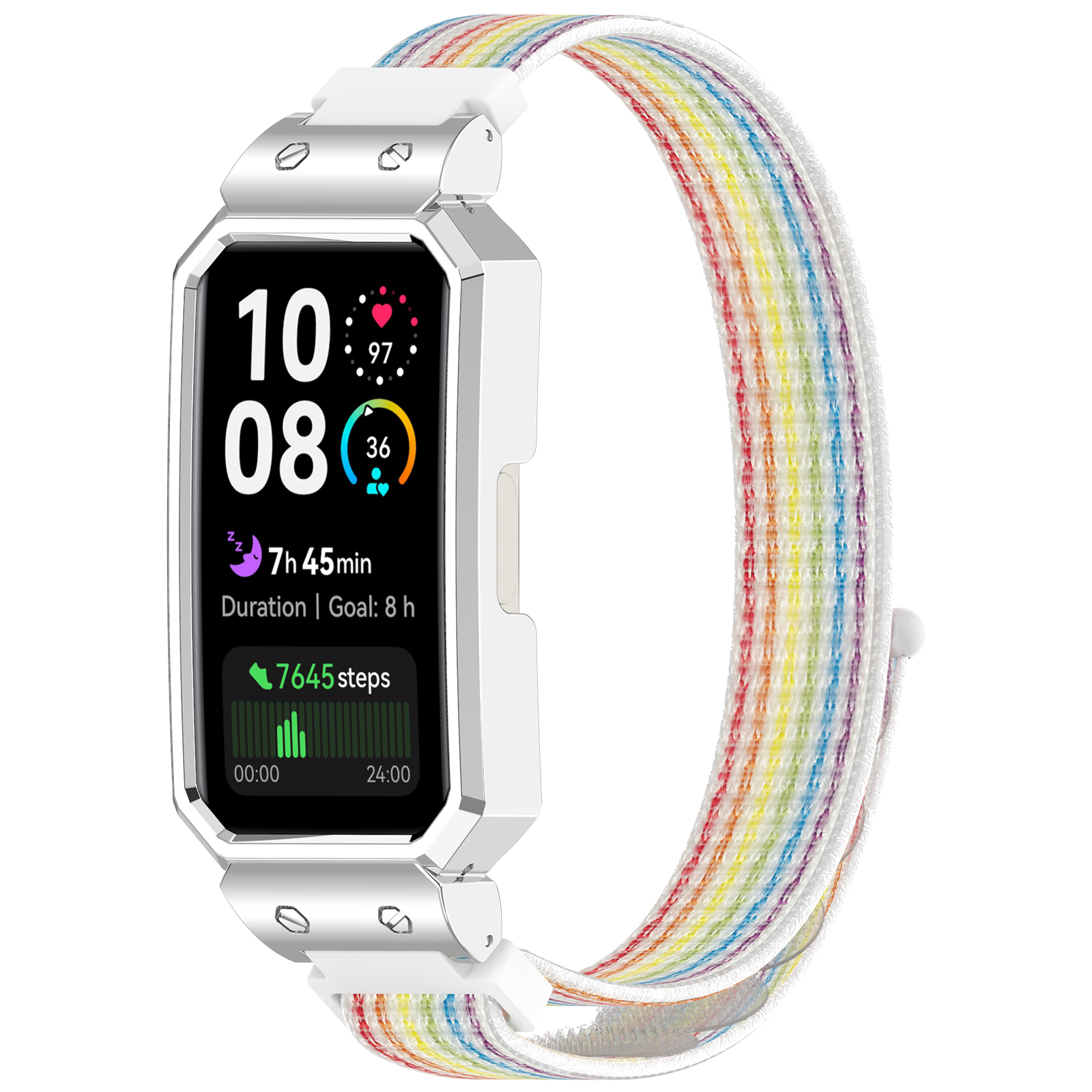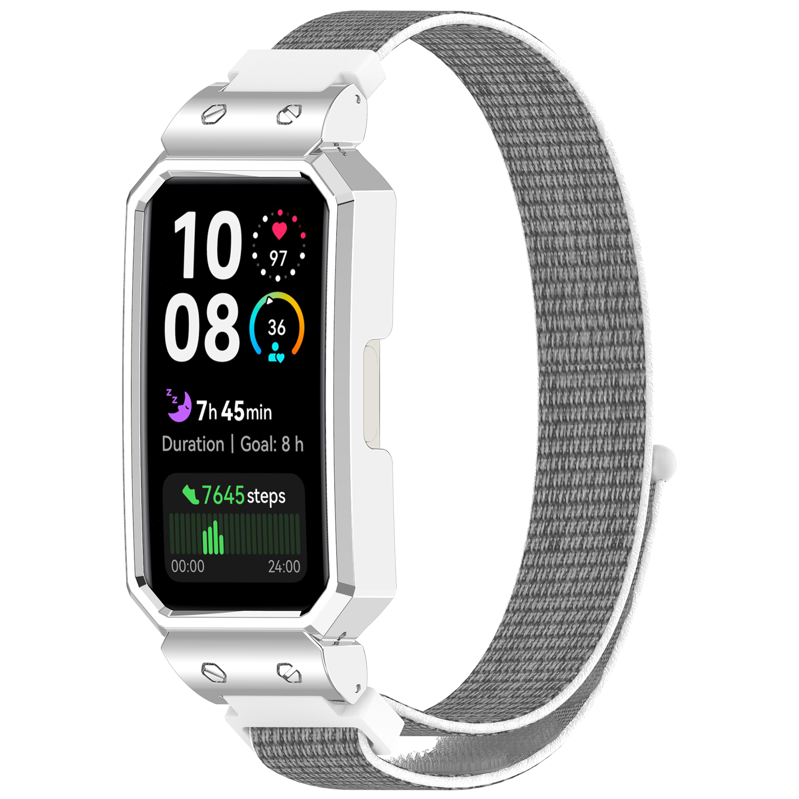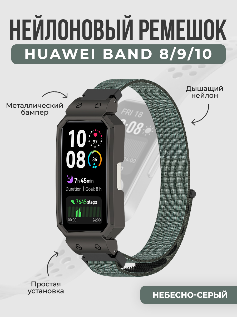 Нейлоновый ремешок с металлическим бампером для Huawei Band 8/9/10, небесно-серый