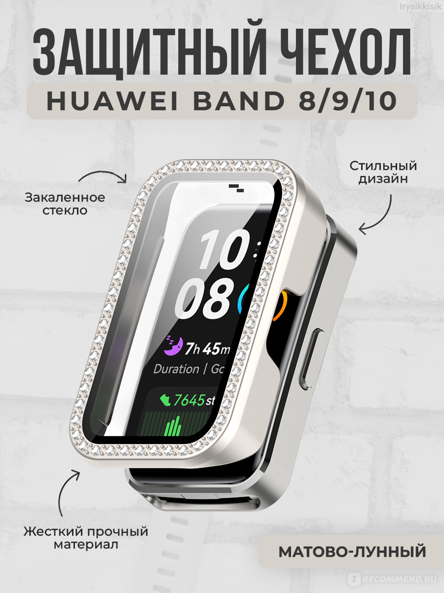 Жесткий защитный чехол со стеклом для Huawei Band 8/9/10, матово-лунный
