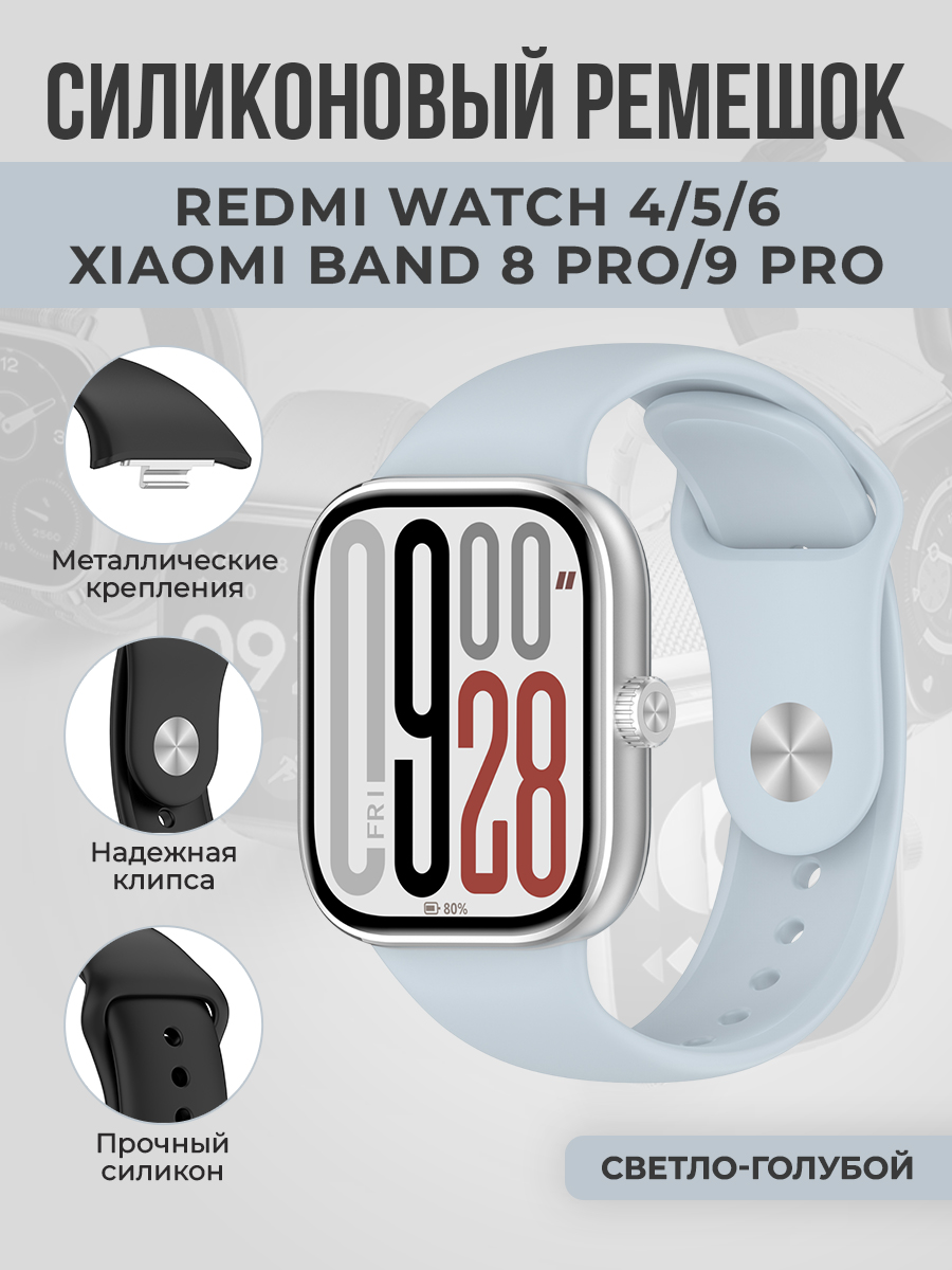 Силиконовый ремешок с клипсой для Redmi Watch 4/5/6/Xiaomi Band 8 Pro/9 Pro, светло-голубой