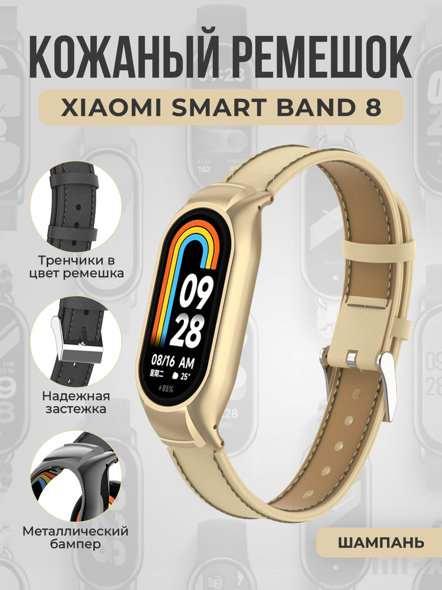 Кожаный ремешок с металлическим бампером для Xiaomi Smart Band 8, шампань
