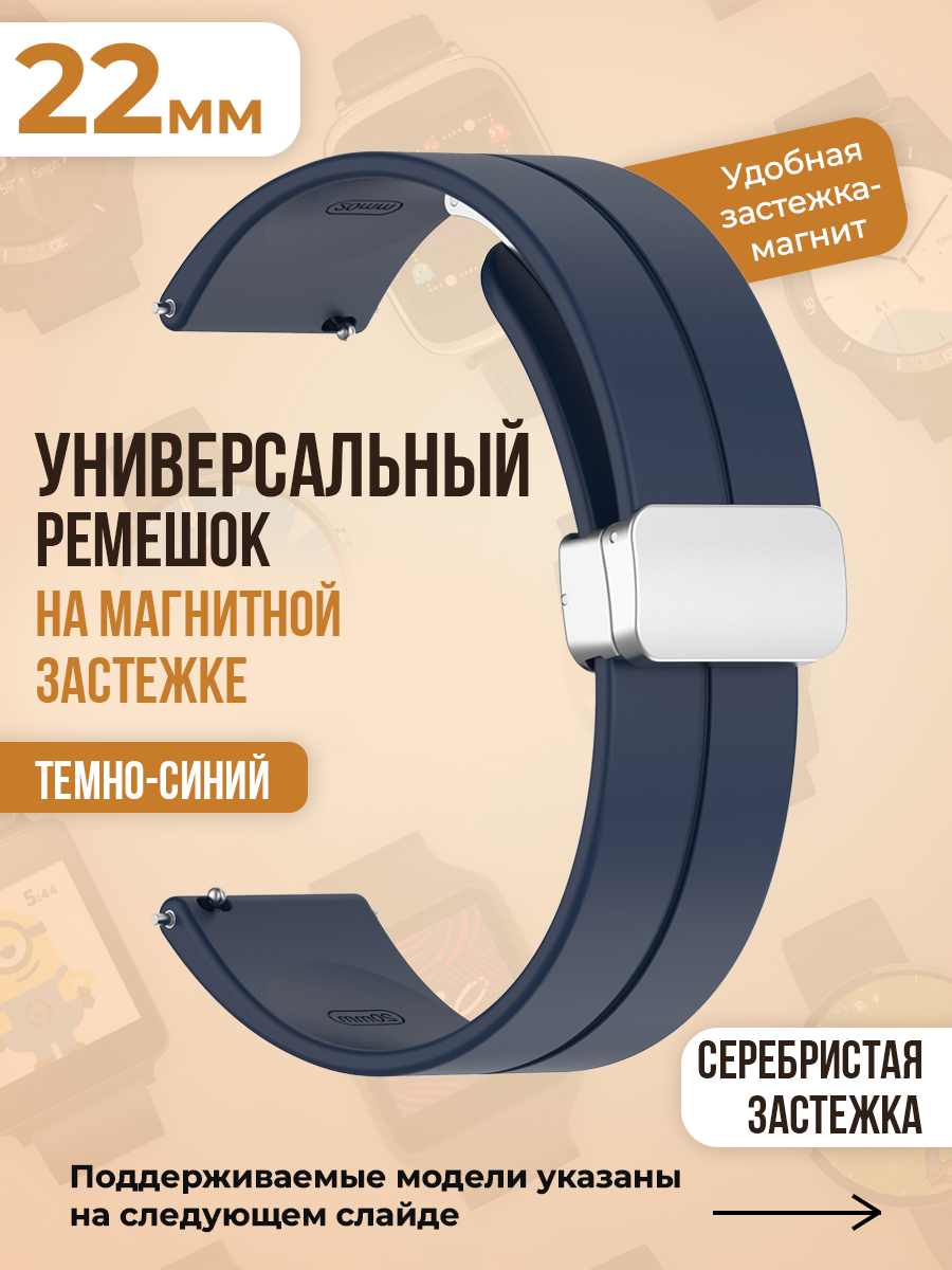 Универсальный силиконовый ремешок с магнитом 22 мм, серебристая застежка, темно-синий