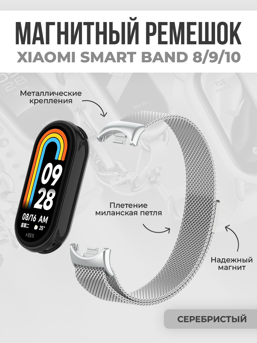 Магнитный ремешок миланская петля для Xiaomi Smart Band 8/9/10, серебристый