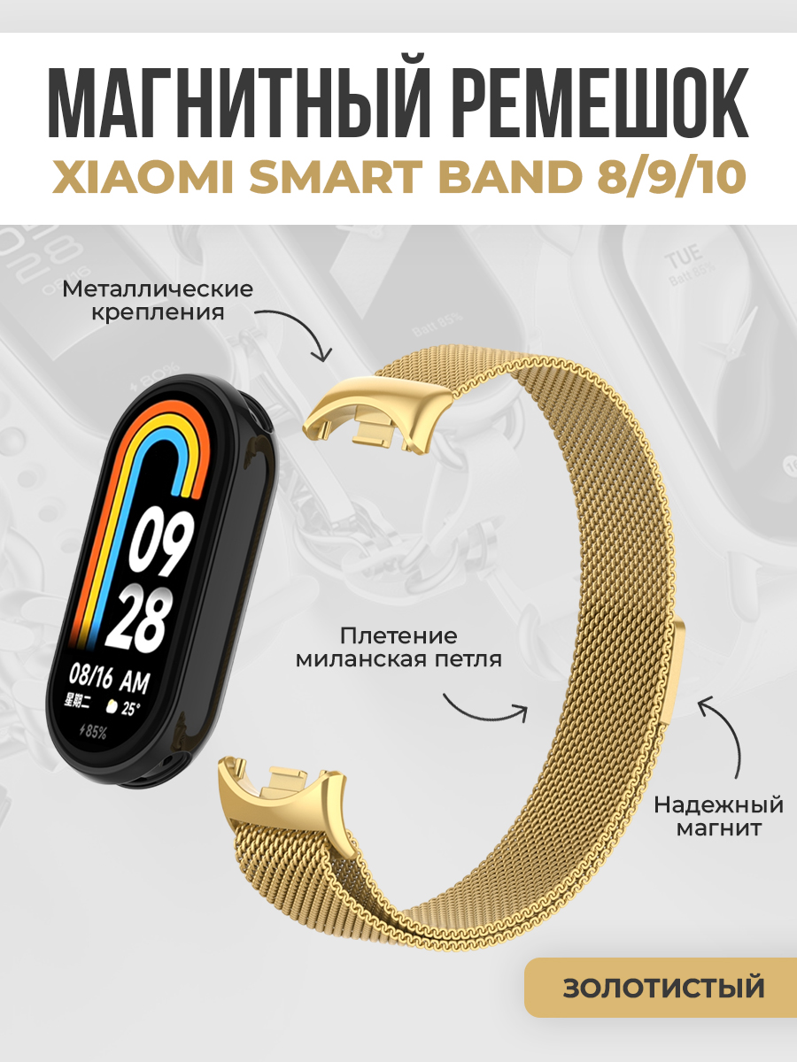 Магнитный ремешок миланская петля для Xiaomi Smart Band 8/9/10, золотистый