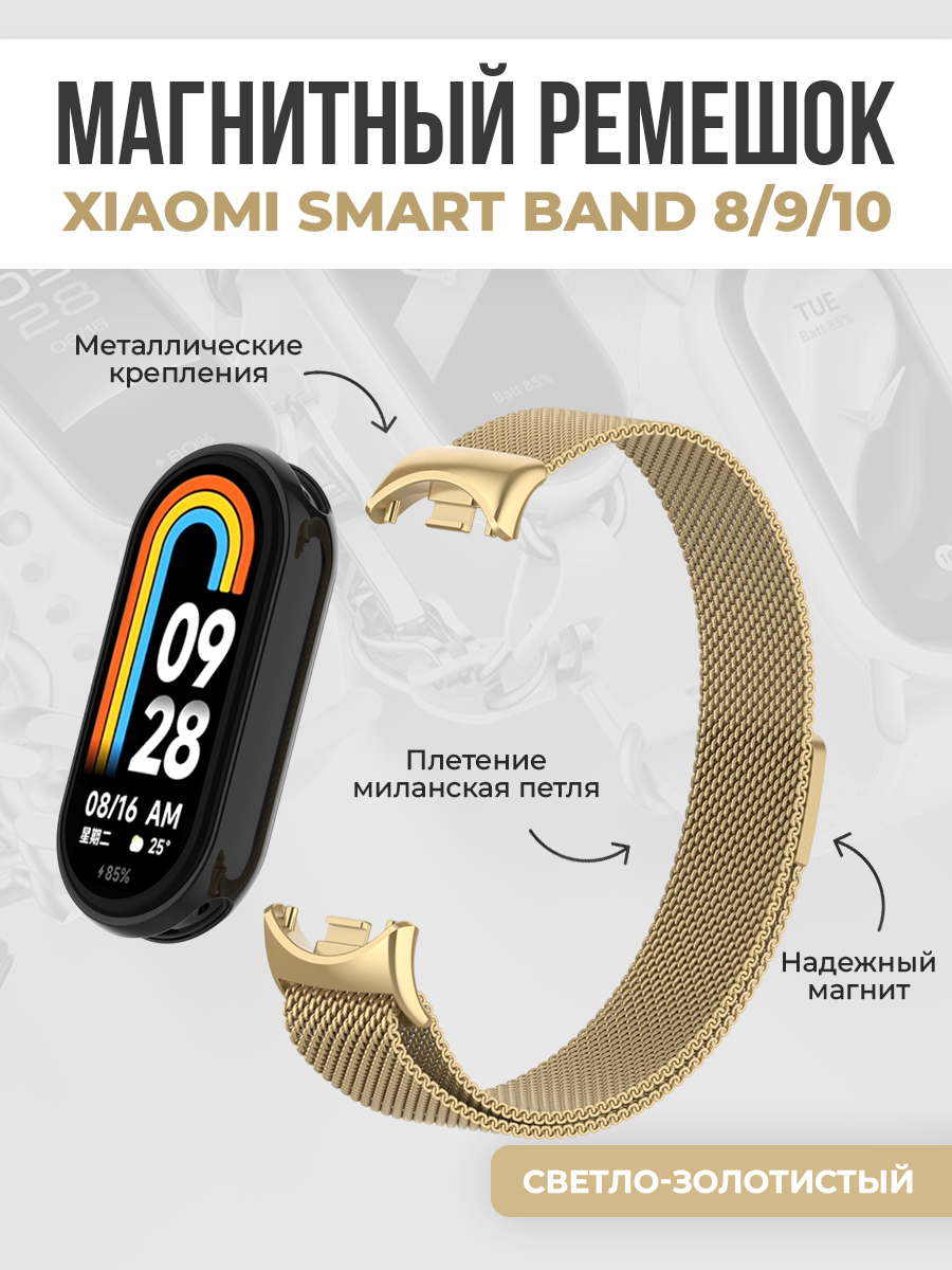 Магнитный ремешок миланская петля для Xiaomi Smart Band 8/9/10, светло-золотистый