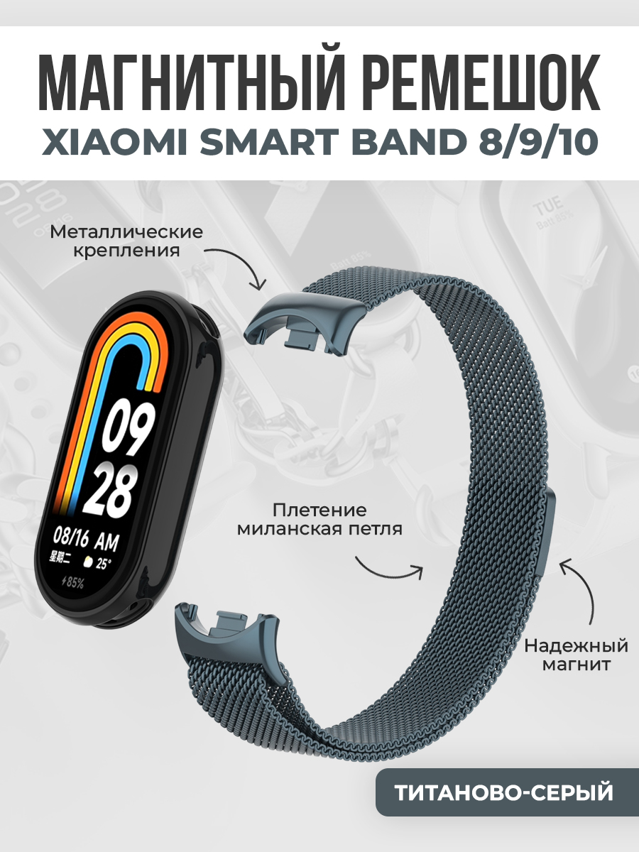 Магнитный ремешок миланская петля для Xiaomi Smart Band 8/9/10, титаново-серый