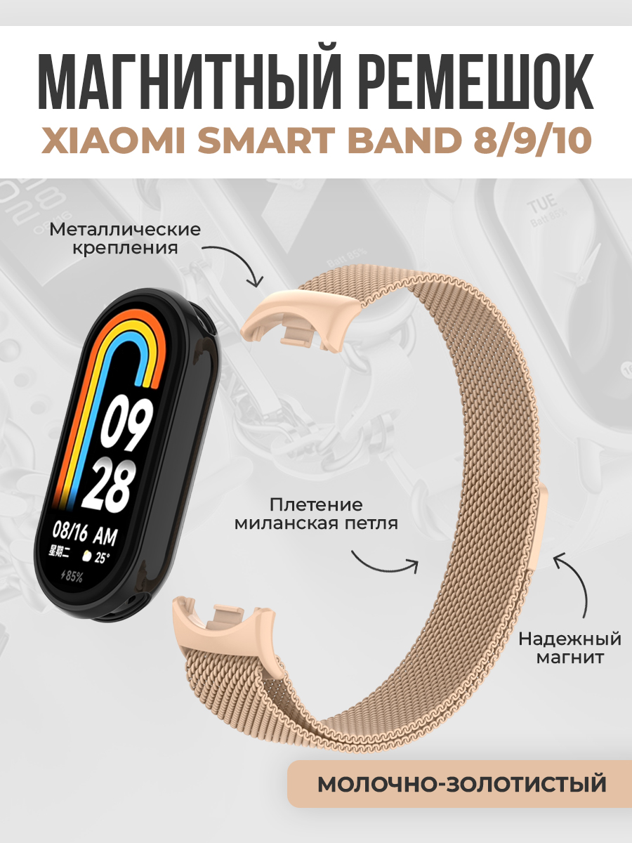 Магнитный ремешок миланская петля для Xiaomi Smart Band 8/9/10, молочно-золотистый