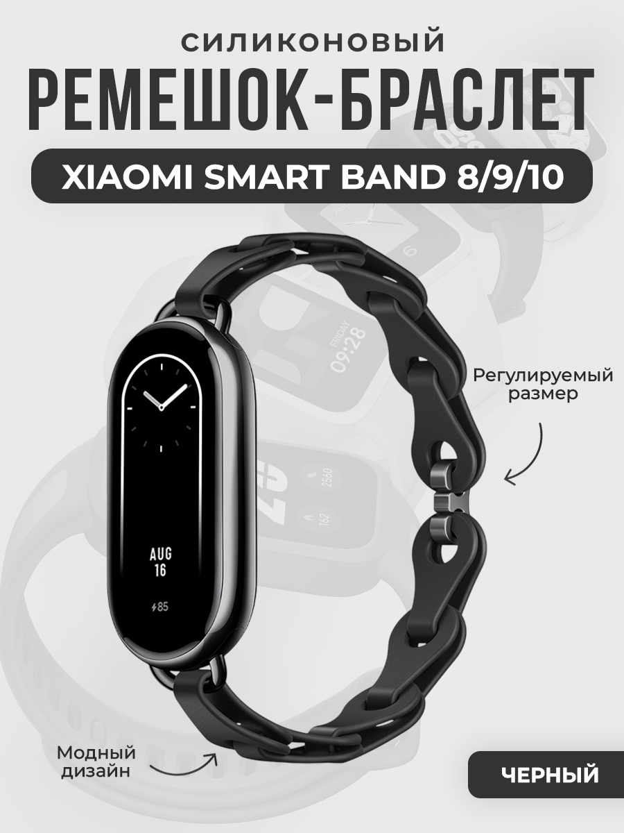 Модный силиконовый ремешок-браслет для Xiaomi Smart Band 8/9/10, черный