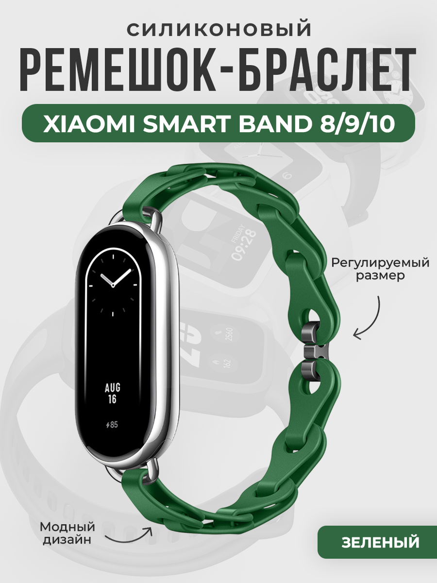 Модный силиконовый ремешок-браслет для Xiaomi Smart Band 8/9/10, зеленый