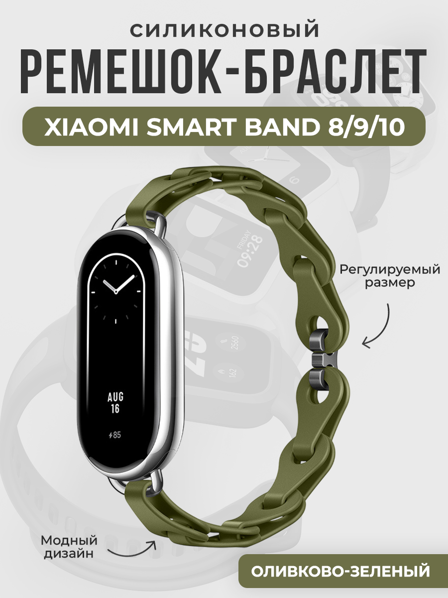 Модный силиконовый ремешок-браслет для Xiaomi Smart Band 8/9/10, оливково-зеленый