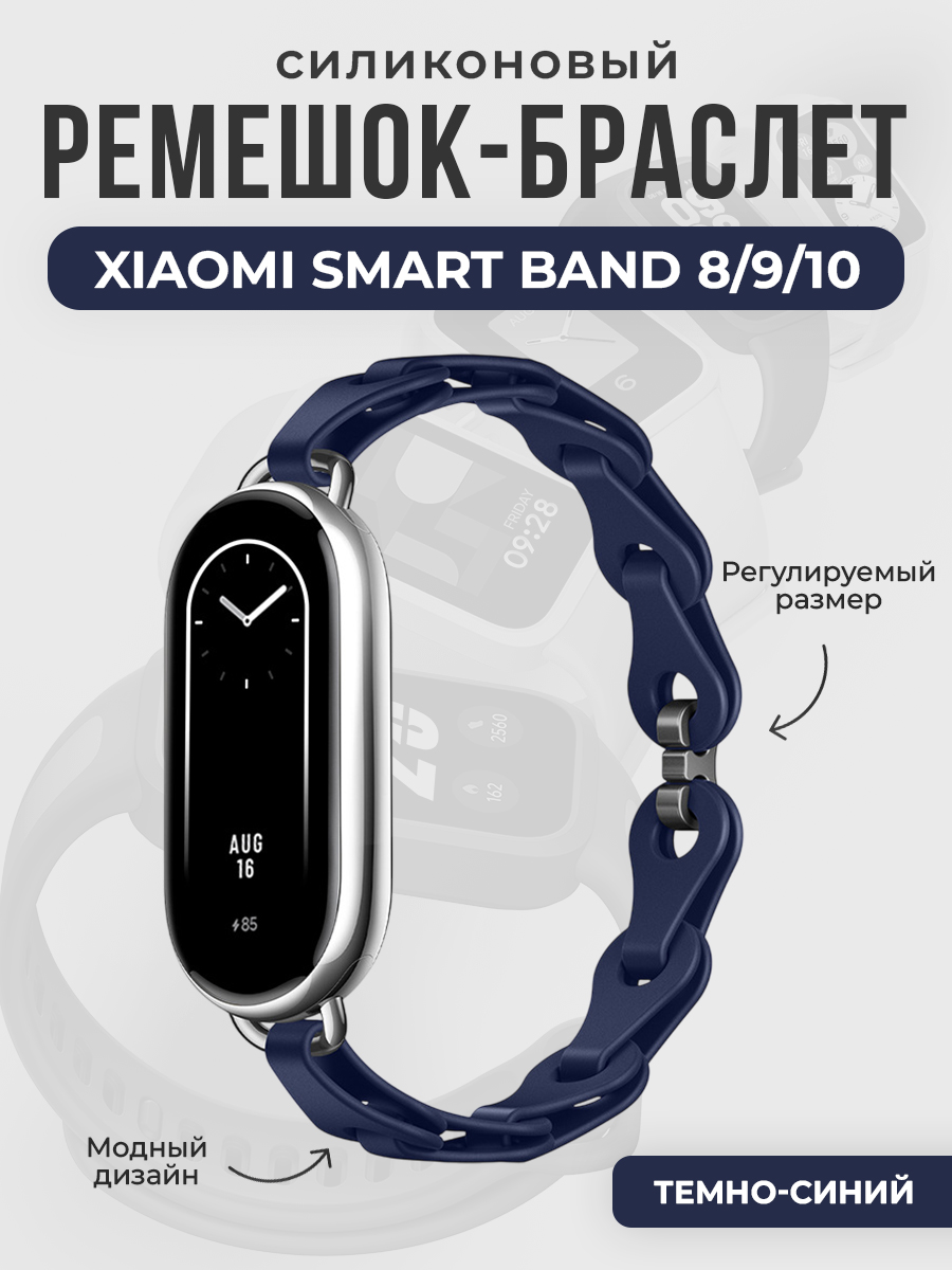Модный силиконовый ремешок-браслет для Xiaomi Smart Band 8/9/10, темно-синий