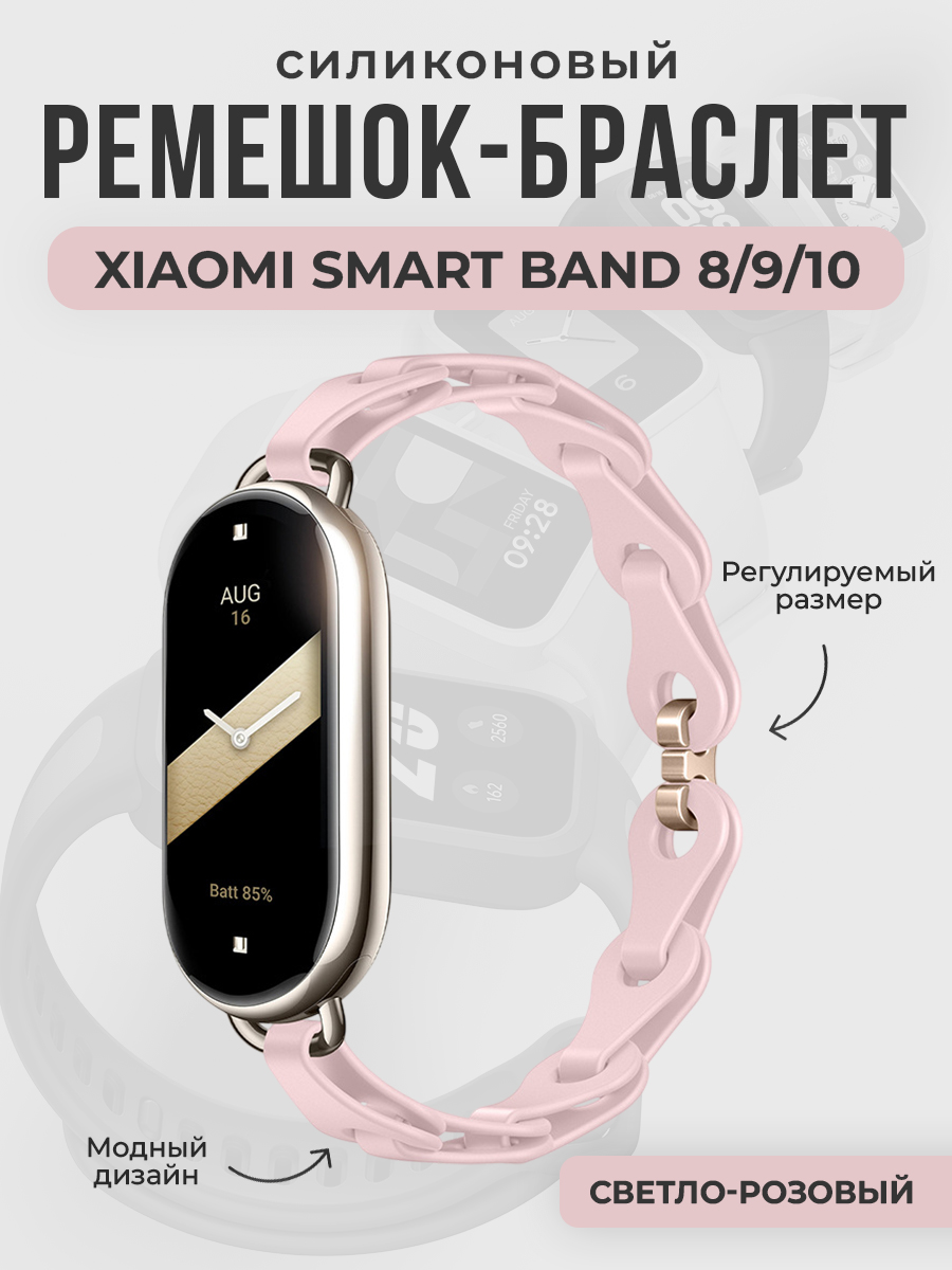 Модный силиконовый ремешок-браслет для Xiaomi Smart Band 8/9/10, светло-розовый