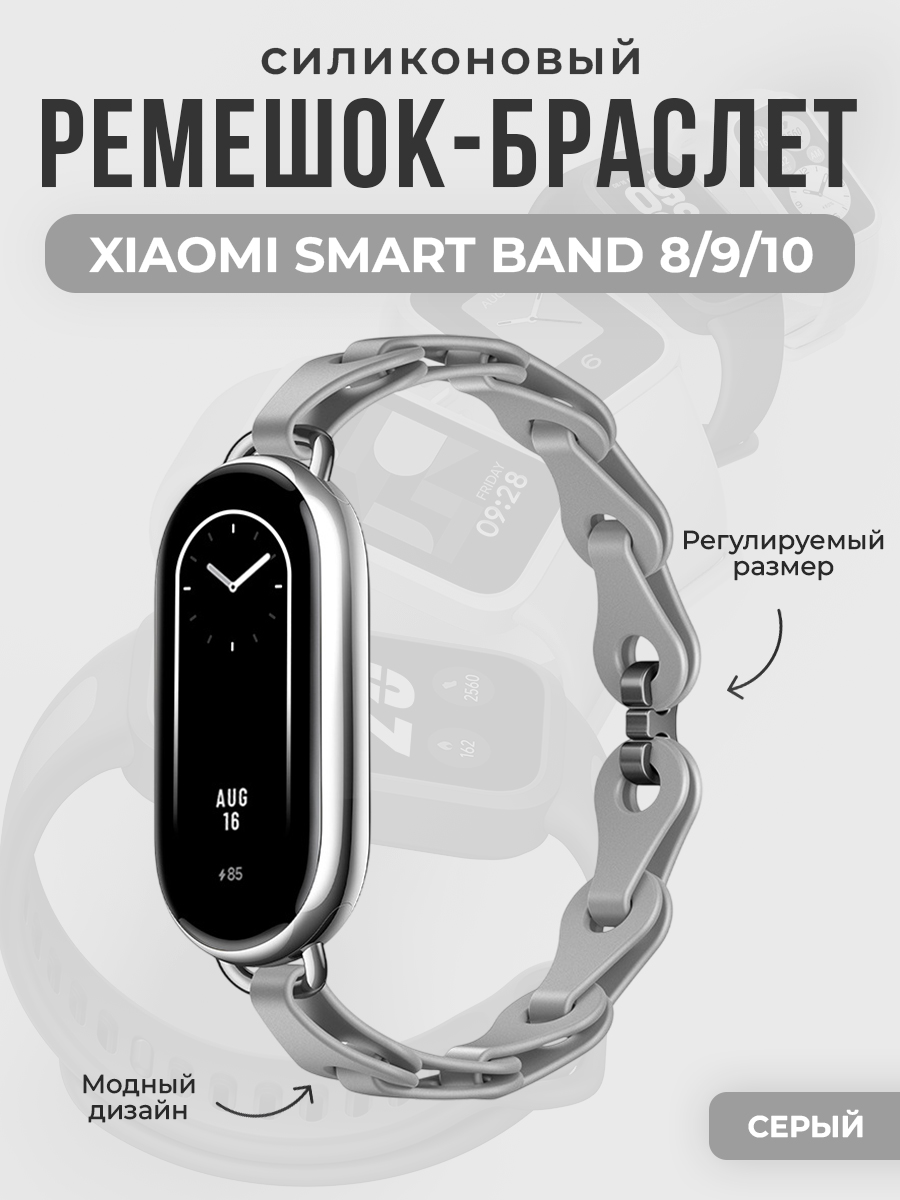 Модный силиконовый ремешок-браслет для Xiaomi Smart Band 8/9/10, серый