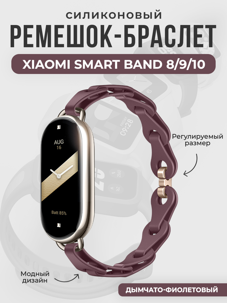 Модный силиконовый ремешок-браслет для Xiaomi Smart Band 8/9/10, дымчато-фиолетовый