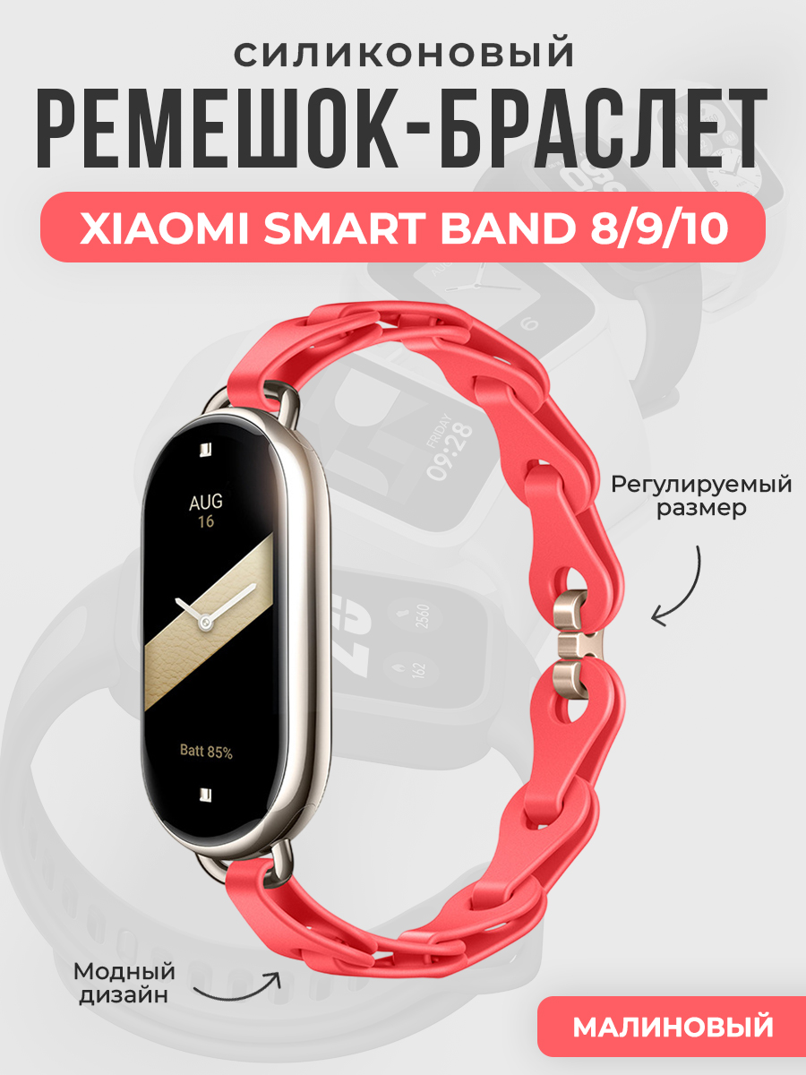 Модный силиконовый ремешок-браслет для Xiaomi Smart Band 8/9/10, малиновый
