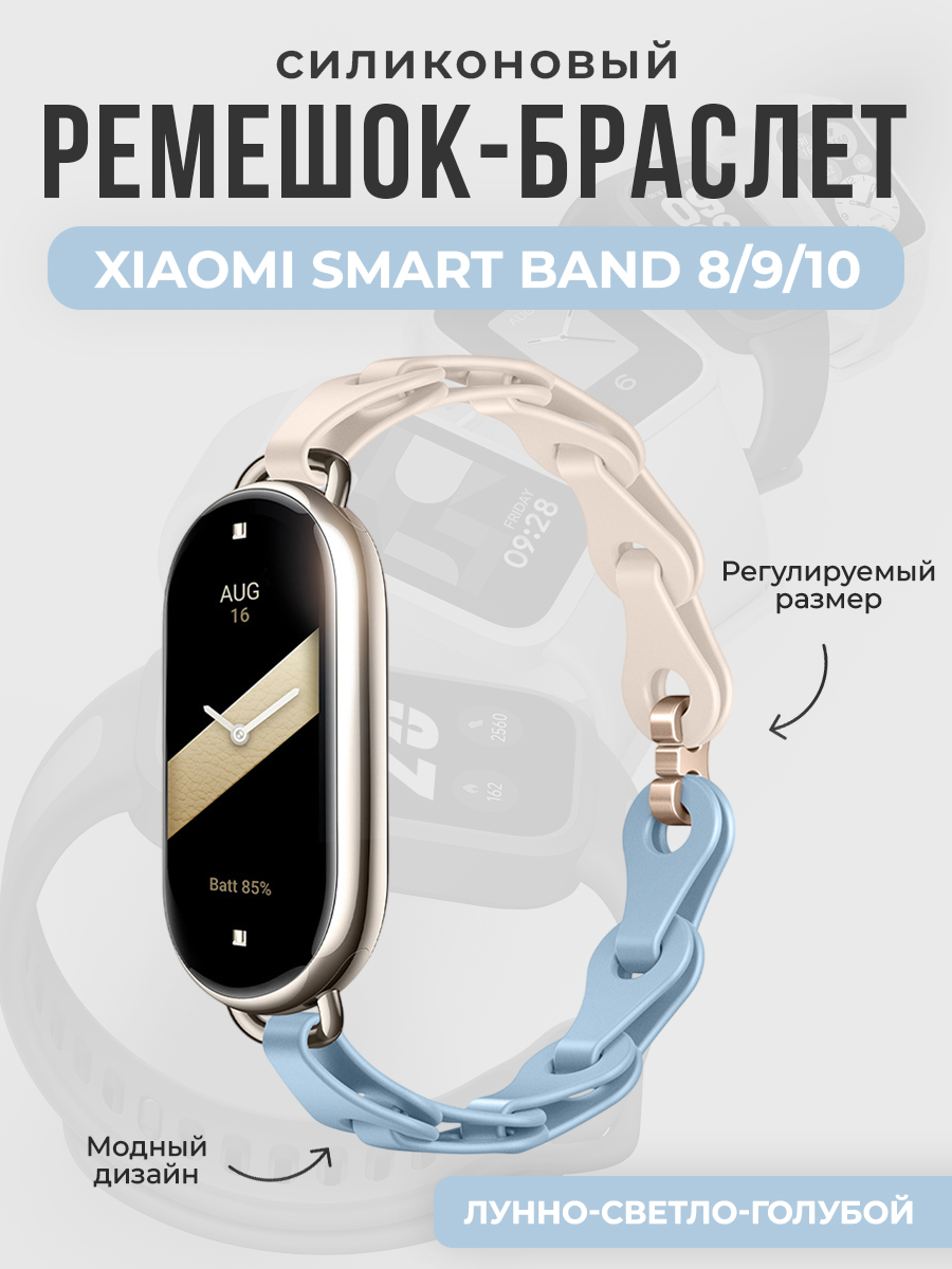 Модный силиконовый ремешок-браслет для Xiaomi Smart Band 8/9/10, лунно-светло-голубой