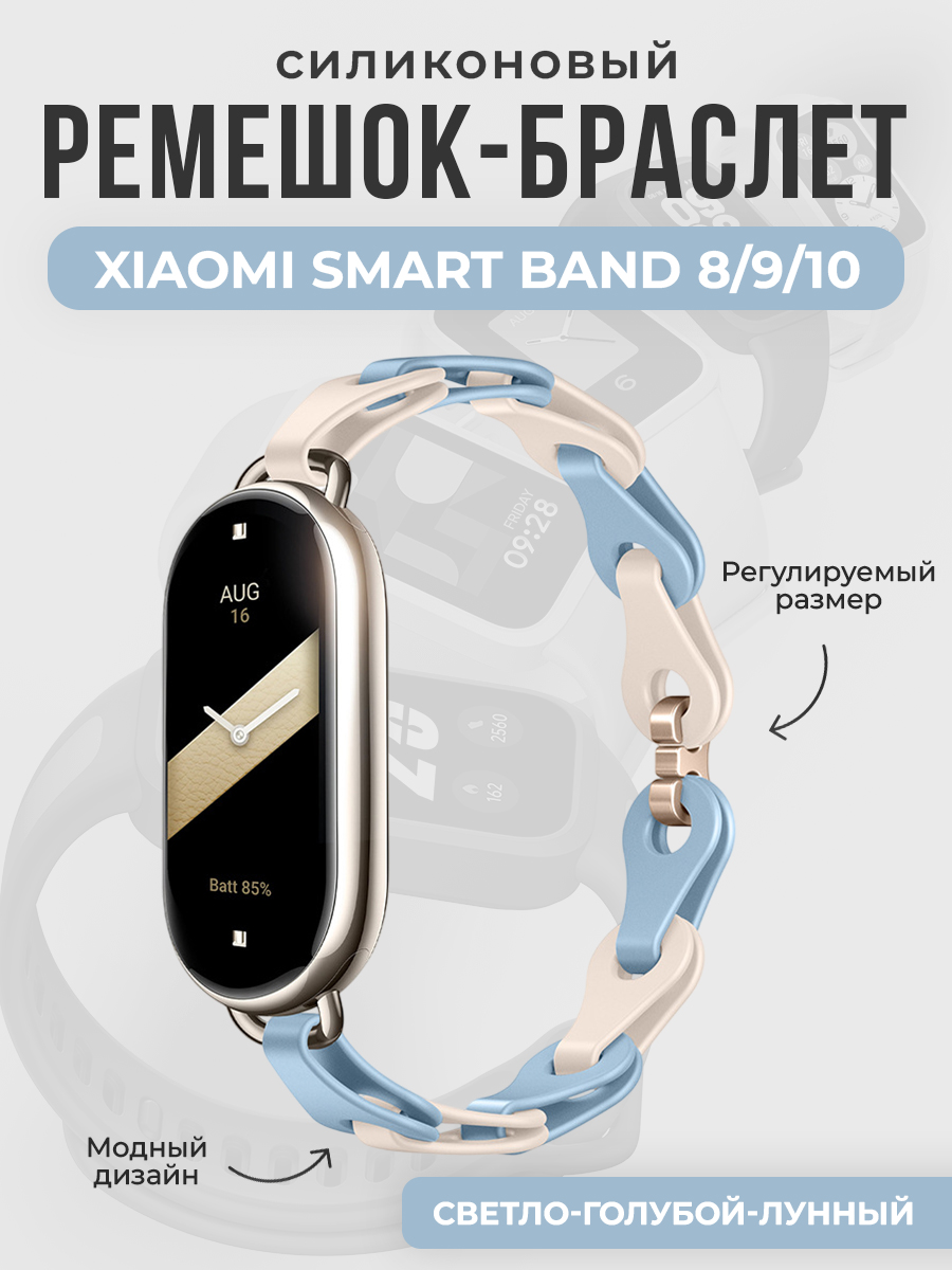 Модный силиконовый ремешок-браслет для Xiaomi Smart Band 8/9/10, светло-голубой-лунный