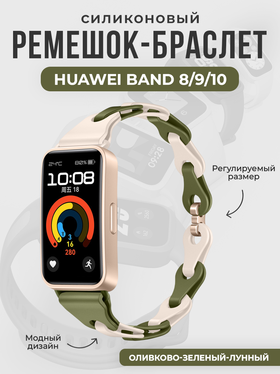Модный силиконовый ремешок-браслет для Huawei Band 8/9/10, оливково-зеленый-лунный