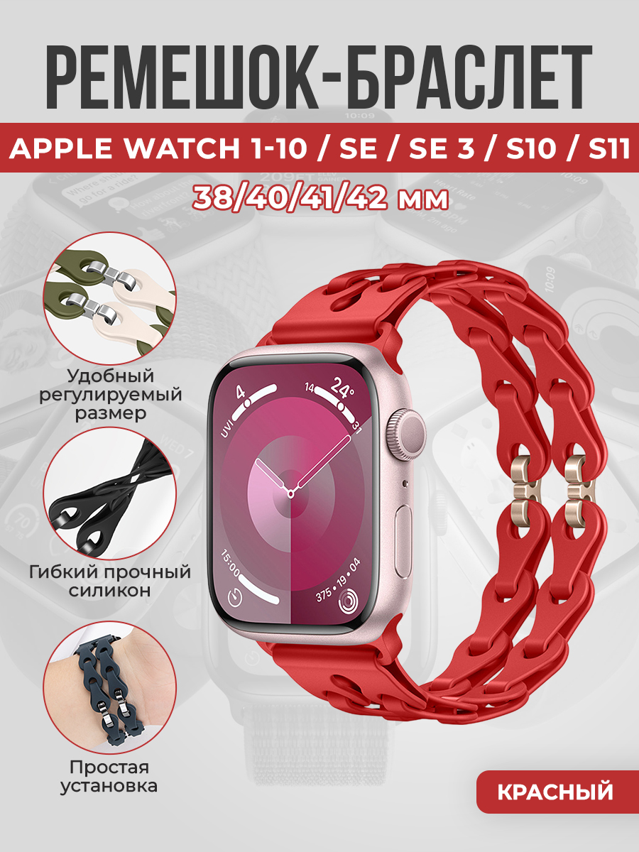 Модный силиконовый ремешок-браслет для Apple Watch 1-9 / SE / SE 3 (38/40/41 мм), 11/S10/S11, 42мм, красный
