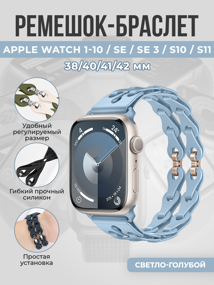 Модный силиконовый ремешок-браслет для Apple Watch 1-9 / SE / SE 3 (38/40/41 мм), 11/S10/S11, 42мм, светло-голубой