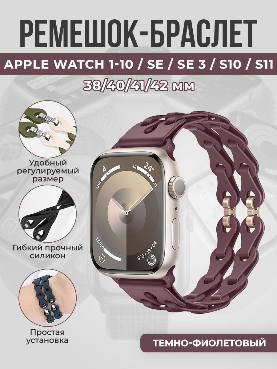 Модный силиконовый ремешок-браслет для Apple Watch 1-9 / SE / SE 3 (38/40/41 мм), 11/S10/S11, 42мм, темно-фиолетовый