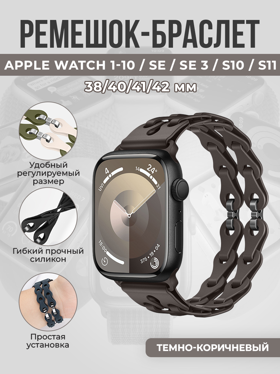 Модный силиконовый ремешок-браслет для Apple Watch 1-9 / SE / SE 3 (38/40/41 мм), 11/S10/S11, 42мм, темно-коричневый