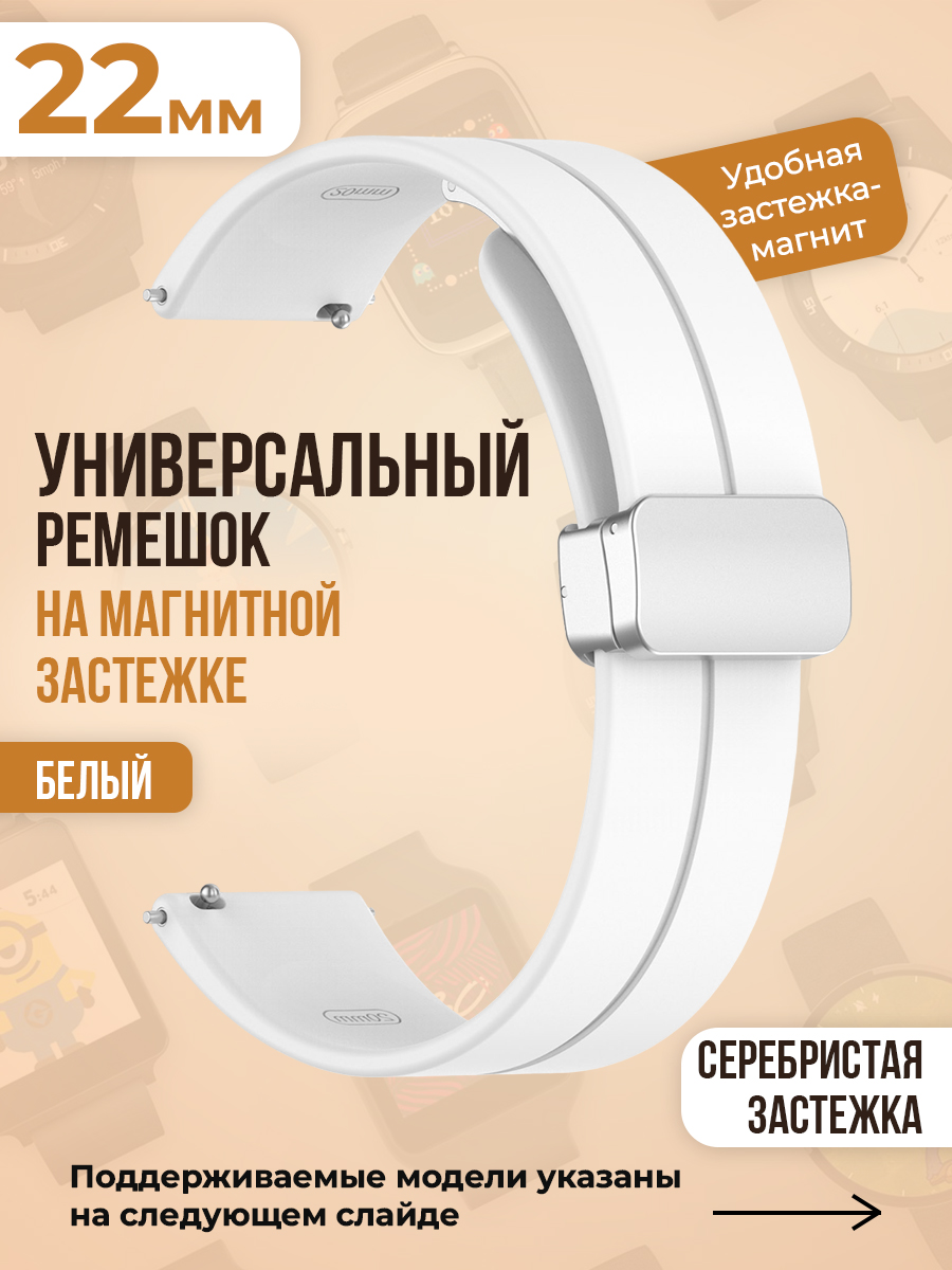 Универсальный силиконовый ремешок с магнитом 22 мм, серебристая застежка, белый