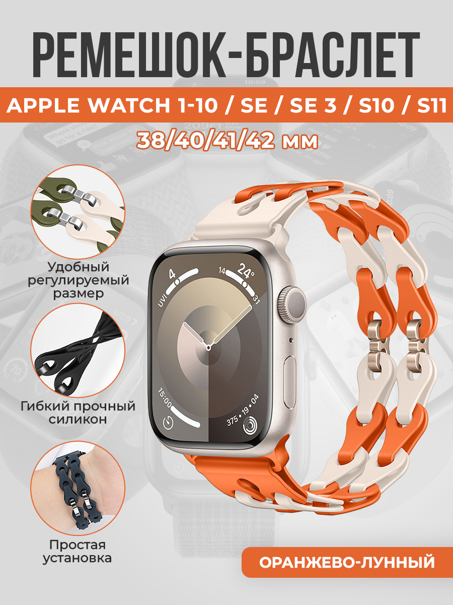 Модный силиконовый ремешок-браслет для Apple Watch 1-9 / SE / SE 3 (38/40/41 мм), 11/S10/S11, 42мм, оранжево-лунный