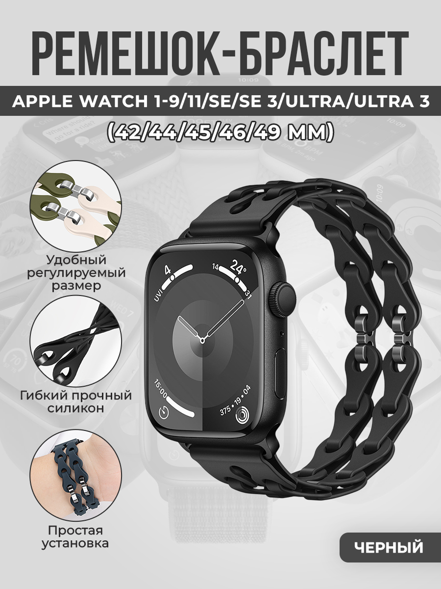 Модный силиконовый ремешок-браслет для Apple Watch 1-9/10-11/SE1-3/ULTRA1-3(42/44/45/46/49 мм), черный